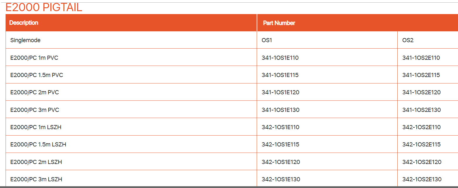 Fibre pigtails are used in permanent connections between patch panels and incoming cables / single blown fibres. Pigtails are pre-constructed with connectors. Connector options include small form factors such as LC, E2000 and MT-RJ as well as SC, FC and ST. These are based on 900μm tight buffered cores (600μm MT-RJ) and suitable for internal use only inside suitable Fibre Management Systems