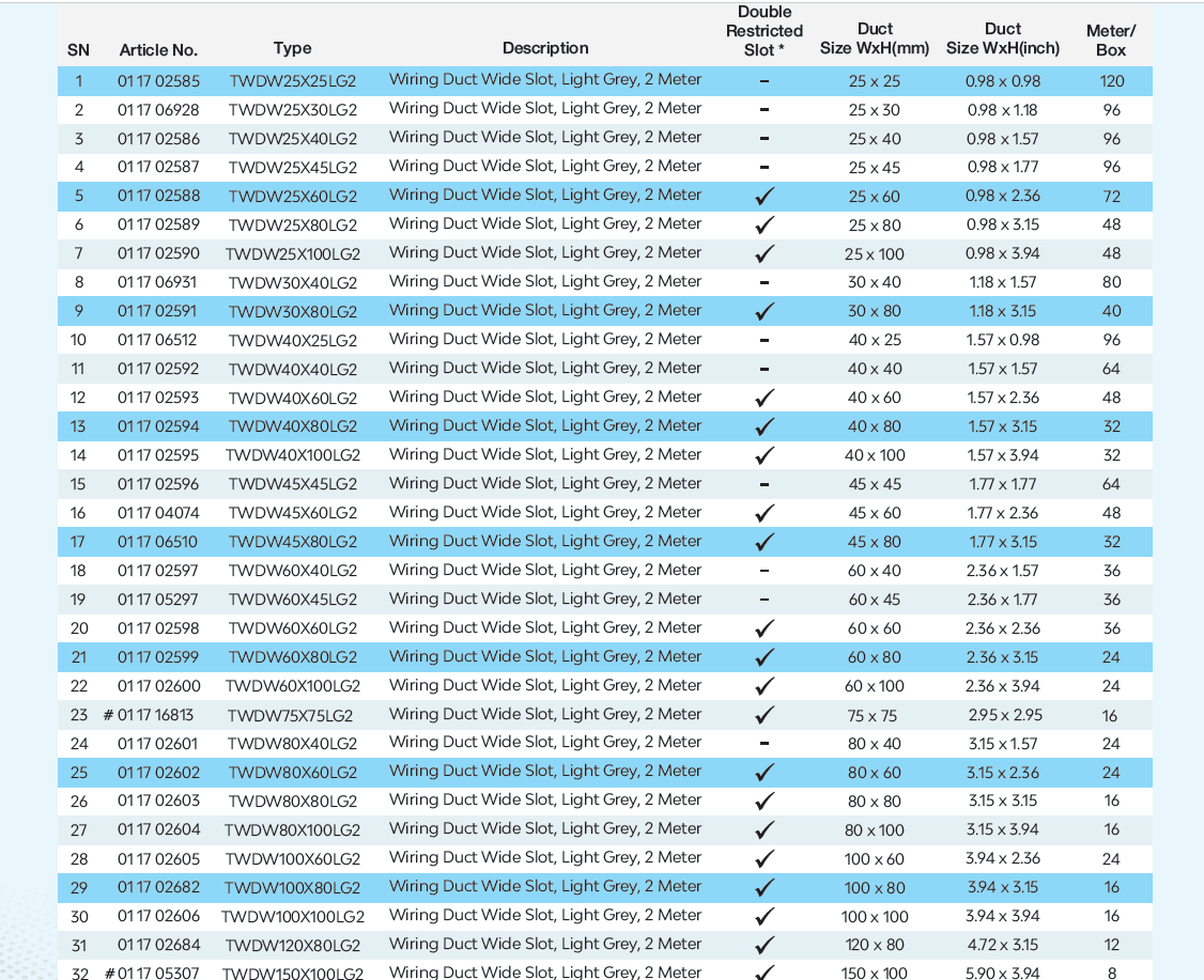 PVC Wiring Duct Narrow & Wide slot. Light Grey, 2 Meter
